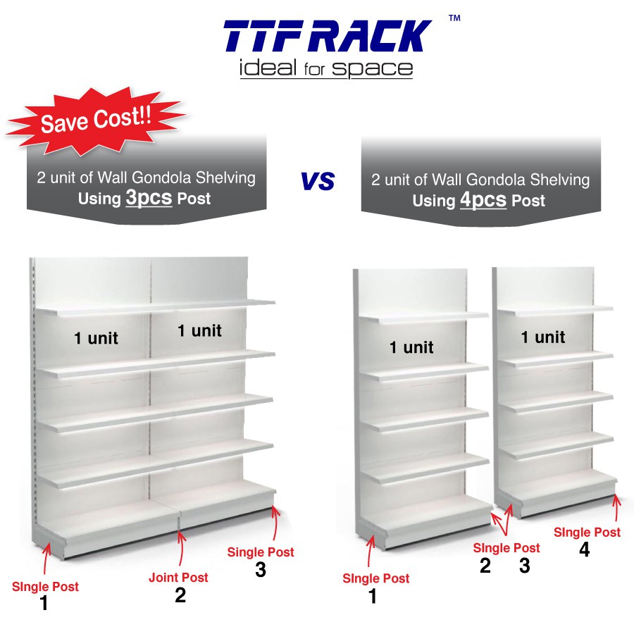 Made of durable metal plates can function with the addition of TTF designed gondola. 3 Shelving 60kg 4 Shelving 60kg Colour. Our gondola racks in Malaysia are able to withstand heavy loads and the round designs of the gondola rack Malaysia ensure it is safe to be moved around.